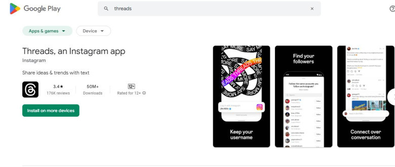 ऐप डाउनलोड करें: सबसे पहले, आपको अपने स्मार्टफोन पर "Instagram Threads" ऐप को आपके आधिकारिक ऐप स्टोर से डाउनलोड करना होगा।