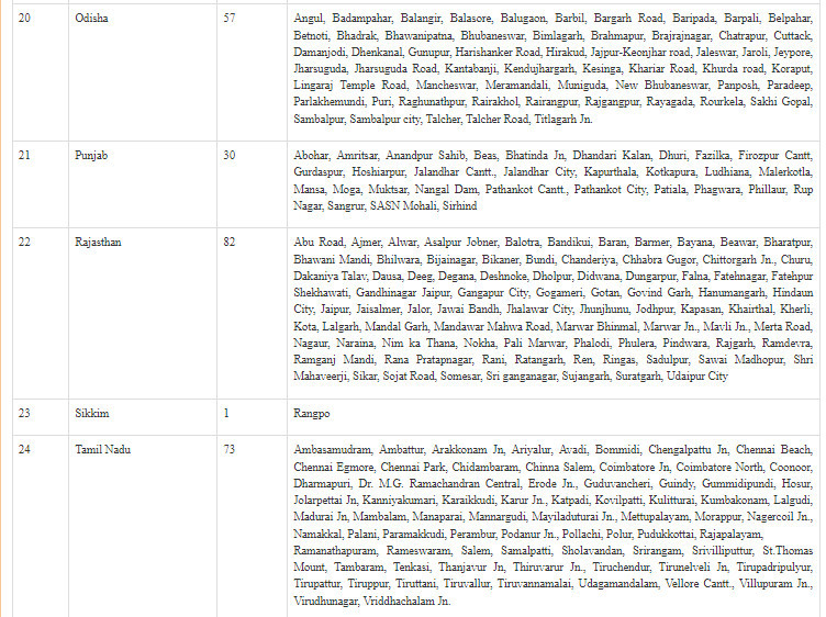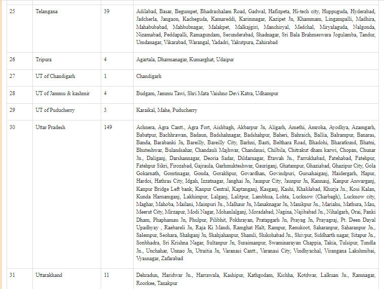 प्राप्त जानकारी के अनुसार उत्तर प्रदेश के 57, हरियाणा के 29 , पंजाब के 30 , दिल्ली के 13 , हिमाचल प्रदेश के 3 और जम्मू-कश्मीर के 4 स्टेशन शामिल है । अभी तक, इस योजना के तहत 1318 स्टेशनों का विकास/पुनर्विकास करने की योजना बनाई गई है, जबकि इस आदर्श स्टेशन योजना के तहत पहले से ही 1251 स्टेशनों का विकास काम पूरा हो चुका है।